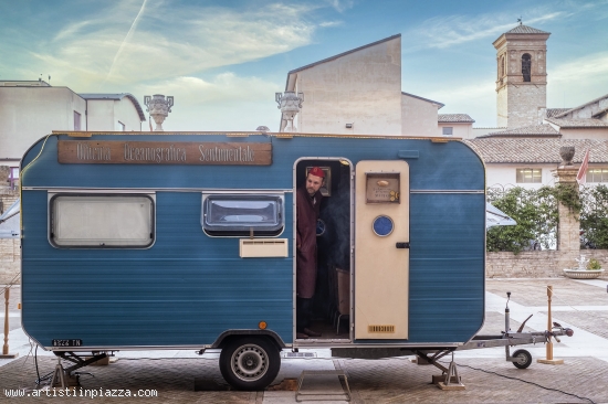 OFFICINA OCEANOGRAFICA SENTIMENTALE - 15 minuti di apnea per capire com'è profondo il mare perché il pensiero come l'oceano non lo puoi bloccare. Tutti noi, da Ulisse a Noè fino ad Aylan, siamo passati per l'acqua per cercare la vita. Spettacolo di spatole, rotelle e onde per 7 viaggiatori nella Roulotteatro.
